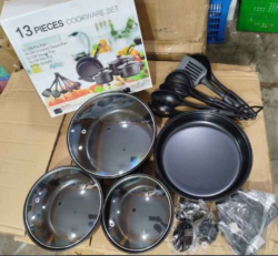 ✅ ෆ්රයි පෑන්, මිල්ක් පොට්, සෝස් පෑන් සහ ලොකු භාජන ඇතුළු කෑලි 13ක්ම එකට ලැබෙනවා.